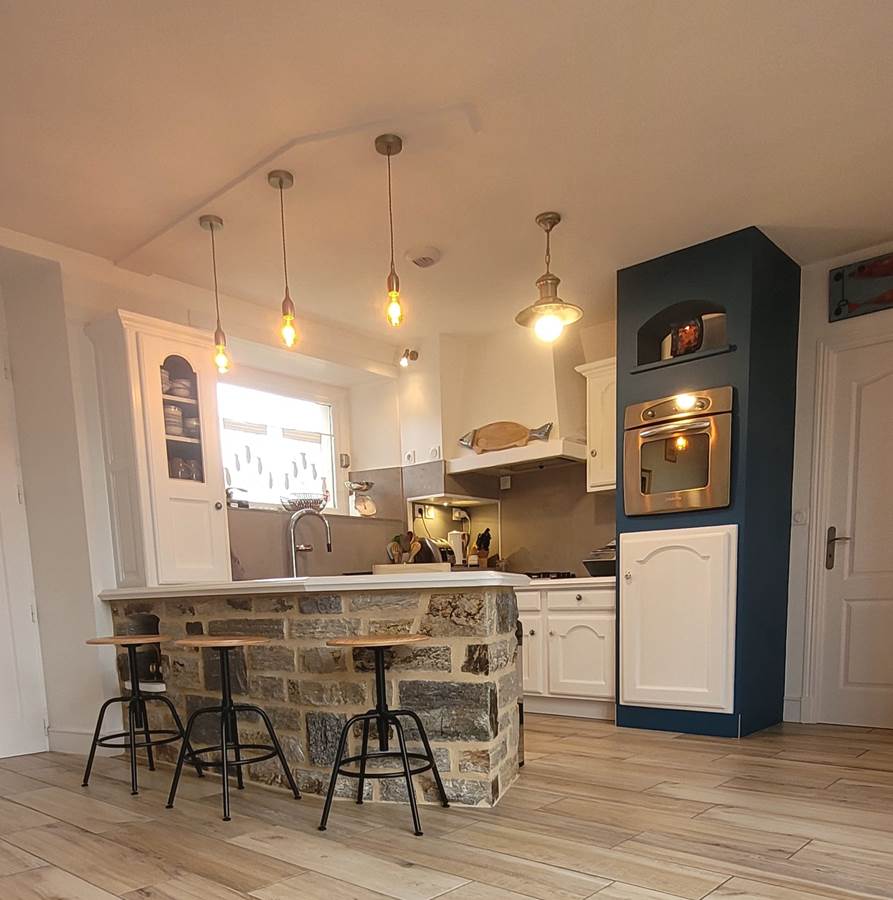 Covering an area of 170 M², the interior of the farmhouse consists of a large bright living room of 60m², with its cocooning lounge equipped with a wood stove for your winter evenings.